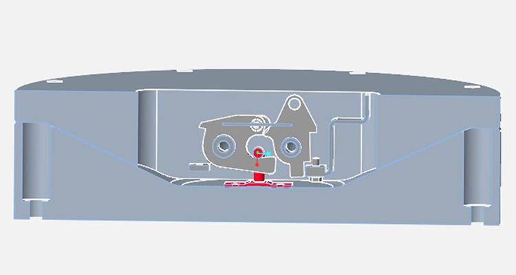Die Anforderung für eine richtige Verbindung zwischen Verfahrensschiene und Bootsstuhl gestaltete sich als schwierig, da es bisher noch nichts Vergleichbares am Markt gibt. Jedoch wurden wir nach längerer Recherche auf ein geeignetes Schnappverschlusssystem (das sehr hohe Kräfte aufnehmen kann) aus der Automobilindustrie aufmerksam, dass sich gut für unsere Konstruktion eignet.