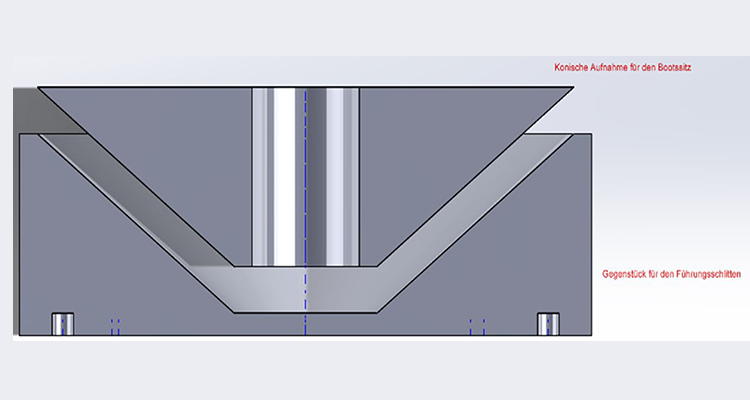 Da der Bootsstuhl bedienerfreundlich und möglichst leicht in die Schiene gehoben werden muss – wurde darauffolgend von uns eine konische Zentrierung entworfen und angefertigt.